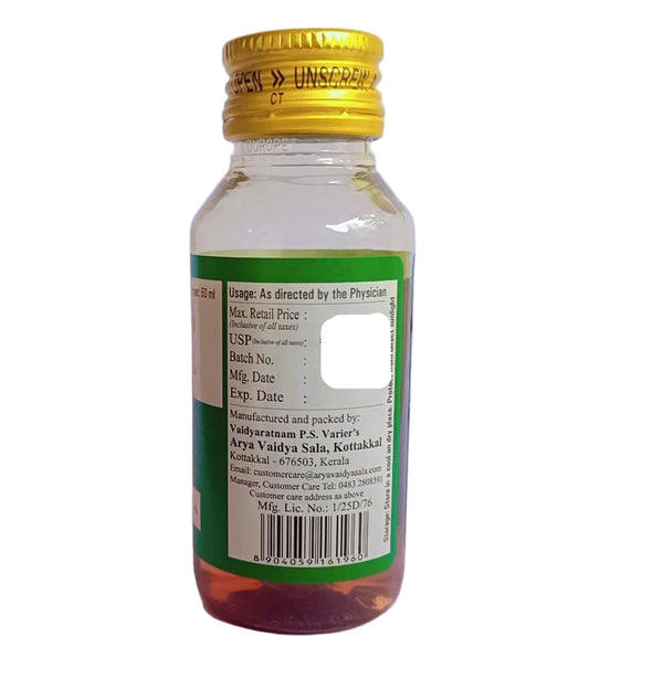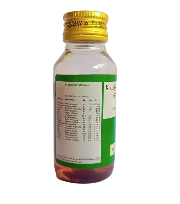 Gandharvahastadi Eranda Tailam is a classical Ayurvedic herbal oil formulation prepared with castor oil (Eranda) and digestive herbs. It is commonly prescribed as a natural laxative where anulomanam (restoration of normal bowel movement) is required. It also supports the management of indigestion, abdominal discomfort, gas, and Vata-related digestive imbalance. This formulation should be used strictly under the guidance of a qualified Ayurvedic physician.
