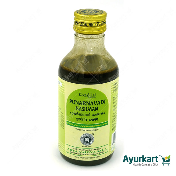 Punarnavadi Kashayam from Kottakkal Arya Vaidya Sala is a classical Ayurvedic decoction known for its diuretic, anti-inflammatory, and detoxifying effects. This formulation is widely used to manage fluid retention (edema), urinary tract disorders, anemia, and liver and kidney-related issues. The key herb, Punarnava (Boerhaavia diffusa), is renowned for its ability to reduce swelling and support kidney health.