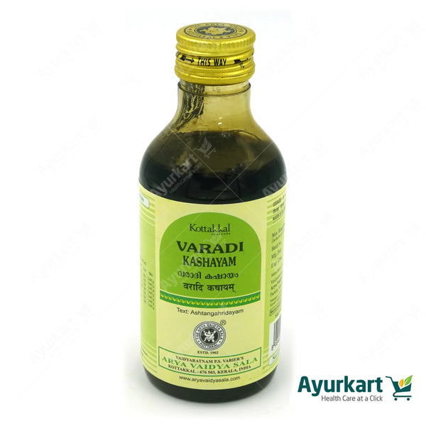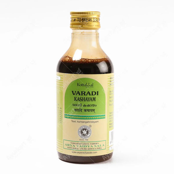 Varadi Kashayam (200 ml) from Kottakkal Ayurveda is a traditional Ayurvedic herbal decoction specifically formulated to address a range of metabolic and blood-related conditions. This potent Kashayam is indicated for obesity, dyslipidemia (abnormal levels of fats in the blood), and anemia. As a classical formulation from Kottakkal Arya Vaidya Sala, it is prepared to support healthy weight management and improve blood quality. It should be taken twice daily before food on an empty stomach, adding three times its quantity of lukewarm water. The dosage is typically 10 to 15 ml for adults and 5 to 10 ml for children, or as directed by a physician.