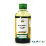 Vaidyaratnam Murivenna is a very effective ayurvedic oil in cuts, wounds, fractures, and dislocation. Murivenna Oil is an effective Ayurvedic medicine used both for external and internal administration. It is a renowned oil for non healing wounds, fractures and sprains. This oil is based on Kerala Ayurvedic medicine. It is prepared in coconut oil base.