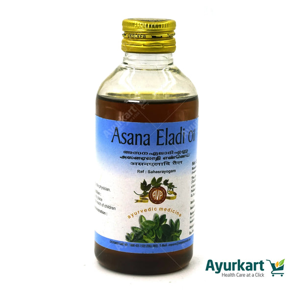 AVP Ayurveda Asana Eladi Tailam is a traditional herbal oil, used in the Ayurvedic treatment of headache, ear and eye diseases.