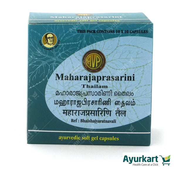 AVP Ayurveda Maharajaprasarini Gel Capsule is an ayurvedic medicinal oil that has been packed in a soft gel capsule for ease of internal consumption. It is the best medicine for neurological disorders and inflammatory pain.