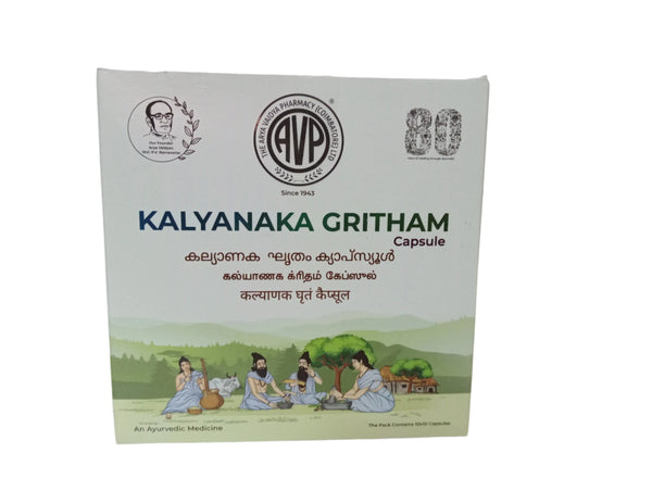 AVP Ayurveda Kalyanaka Ghritam Soft Gel Capsules is an Ayurvedic formulation in capsule form, formed by the ingredients given below.