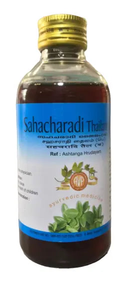 AVP Ayurveda Sahacharadi Thailam is an Ayurvedic herbal oil used in the treatment of Vata imbalance disorders, muscle and joint stiffness, and convulsions. It is used orally and also for massage.